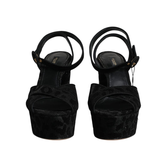 Dolce & Gabbana Black Leopard Platform Heels Sandals Shoes