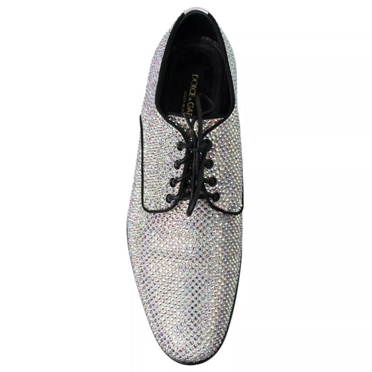 Dolce & Gabbana Silver Leather Rhinestones Derby Dress Shoes