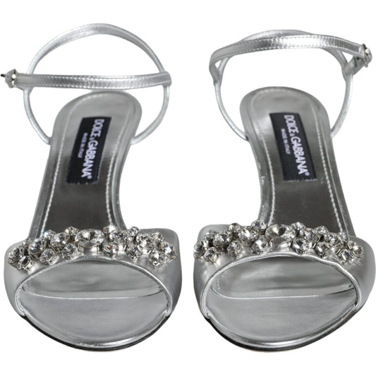 Dolce & Gabbana Silver Crystal Ankle Strap Sandals Shoes