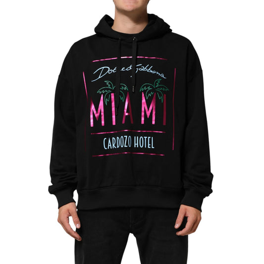 Dolce & Gabbana Black Printed Hooded Men Sweatshirt Sweater