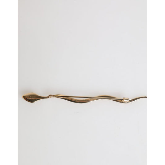 Dolce & Gabbana Gold Brass Logo Beaded Guitar Pin Brooch