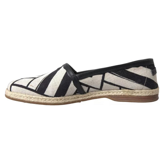 Dolce & Gabbana Black White Stripes Flat Espadrille Shoes