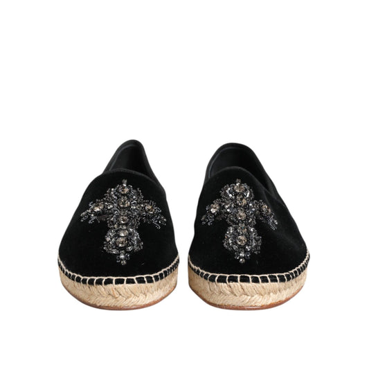 Dolce & Gabbana Black Cross Crystal Slip On Espadrille Shoes
