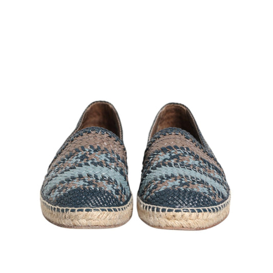Dolce & Gabbana Blue Gray Woven Leather Buffalo Espadrille Shoes