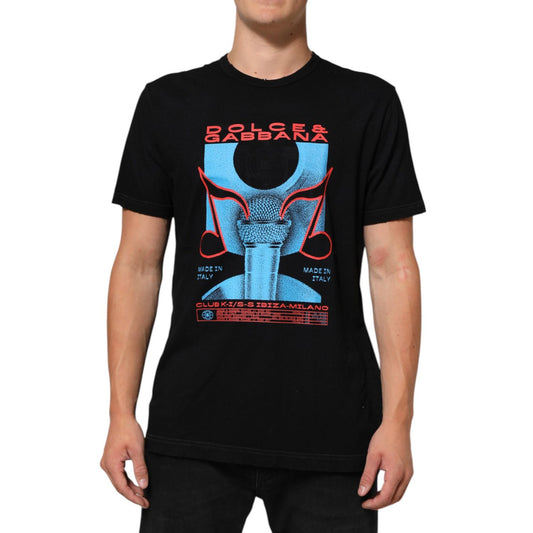 Dolce & Gabbana Black Musical Print Cotton Crew Neck T-shirt