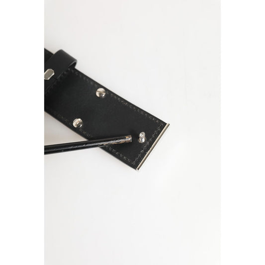 Dolce & Gabbana Calf Leather Silver Tone Black Metal Buckle Belt