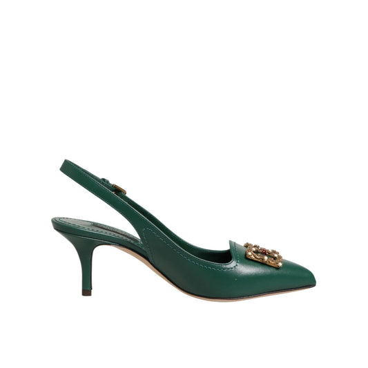 Dolce & Gabbana Green Leather AMORE Heels Slingbacks Shoes