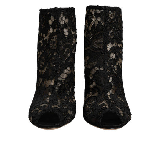 Dolce & Gabbana Black Floral Lace Heels Ankle Boots Shoes
