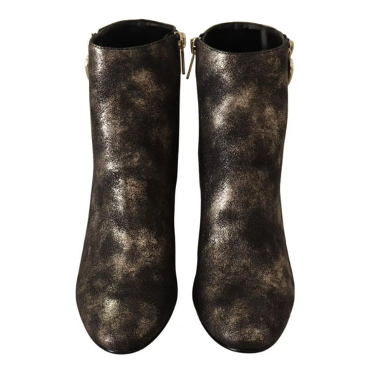 Dolce & Gabbana Black Embellished Heel Ankle Boots Shoes