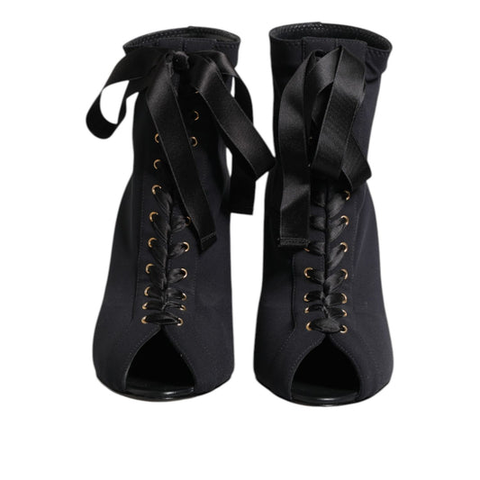 Dolce & Gabbana Black Stiletto Heels Lace Up Boots Shoes