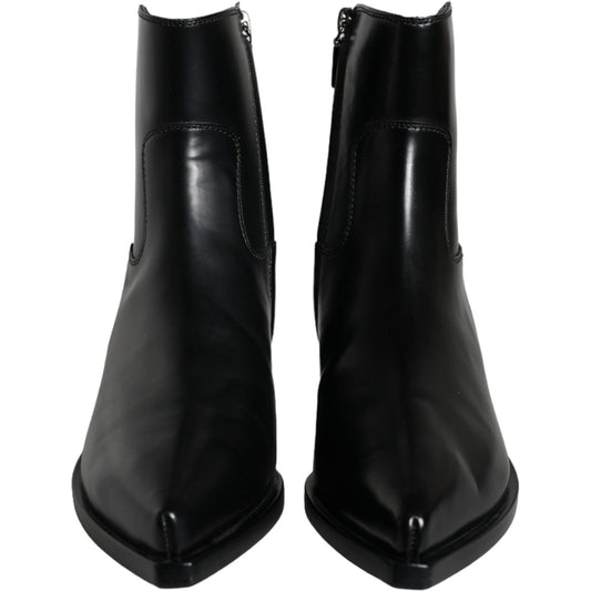 Dolce & Gabbana Black Leather Ankle Boots Booties Shoes