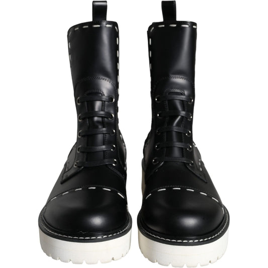 Dolce & Gabbana Black Leather Combat Mid Calf Boots Shoes