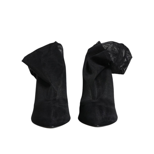 Dolce & Gabbana Black Mesh Stiletto Heels Ankle Boots Shoes