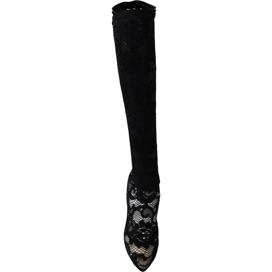 Dolce & Gabbana Black Stretch Socks Knee High Booties Shoes