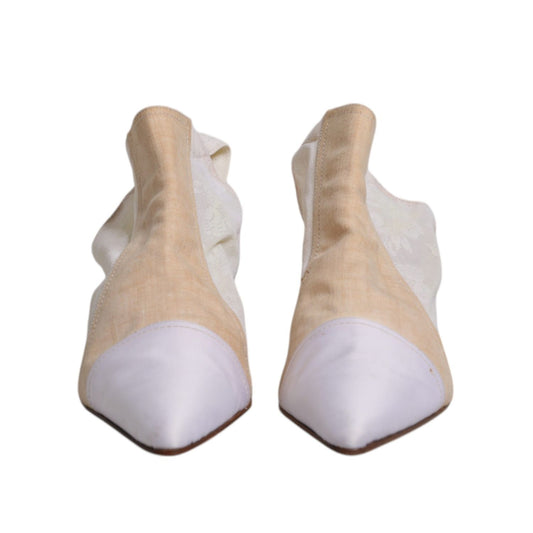 Dolce & Gabbana White Lace Crystals Heels Sandals Shoes