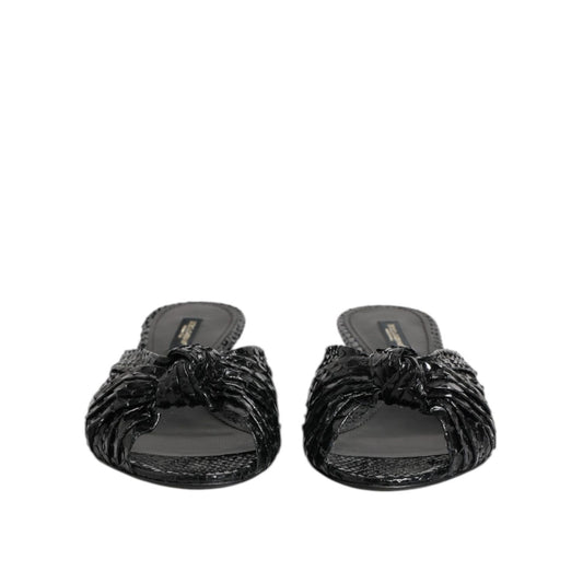 Dolce & Gabbana Black Leather Heels Slides Sandals Shoes