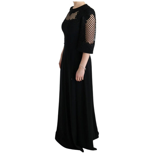 Dolce & Gabbana Black Floral Lace Long Bodycon Maxi Dress