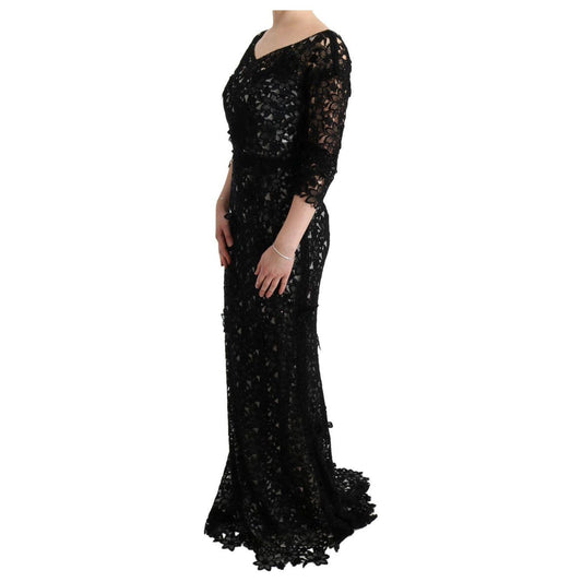 Dolce & Gabbana Black Floral Lace Long Ball Maxi Dress