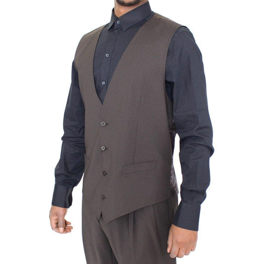 优雅棕色条纹羊毛连衣裙背心
