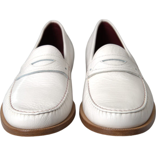 Dolce & Gabbana White Leather Slip On Mocassin Loafers Shoes